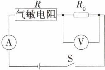 8.「2024黑龙江龙东地区中考」天然气是一种清洁能源,方便居民使用的同时,存在着泄漏的安全隐患。物理兴趣小组在老师的指导下设计了天然气泄漏检测电路,如图电源电压恒定不变,R₀为定值电阻,R为气敏电阻。R阻值随天然气浓度的增大而减小,则天然气(