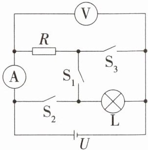 )A.只闭合$S_1,$电阻R与灯泡L并联
