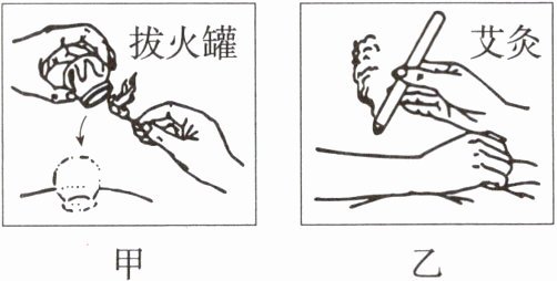11. 「2025河南洛阳期中,」中医是我国的四大国粹之一。拔火罐能有效治疗某些疾病,使用时先加热火罐中的气体,再按图甲所示方法迅速将火罐按到皮肤上,一段时间后,罐内气体的温度