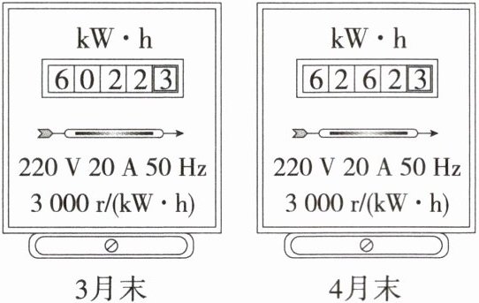 4. 小明家3月末和4月末电能表表盘示数如图所示,则小明家4月份用电
