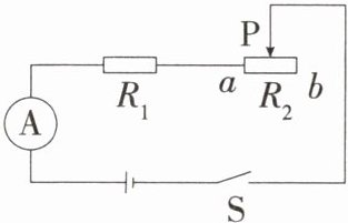10. 「2024四川南充中考,★☆」如图所示,电源电压不变,电流表的测量范围为0~0.6A,定值电阻$R_1= 30Ω,R_2$为滑动变阻器,其最大阻值为50Ω,滑动变阻器的滑片P在b端时,电流表的读数为0.3A,则电源电压为