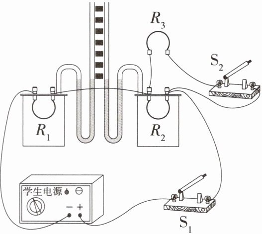 D.闭合$S_1$和$S_2,$将图中$R_3$放入右侧密闭容器里,左侧U形管内液柱的高度差大