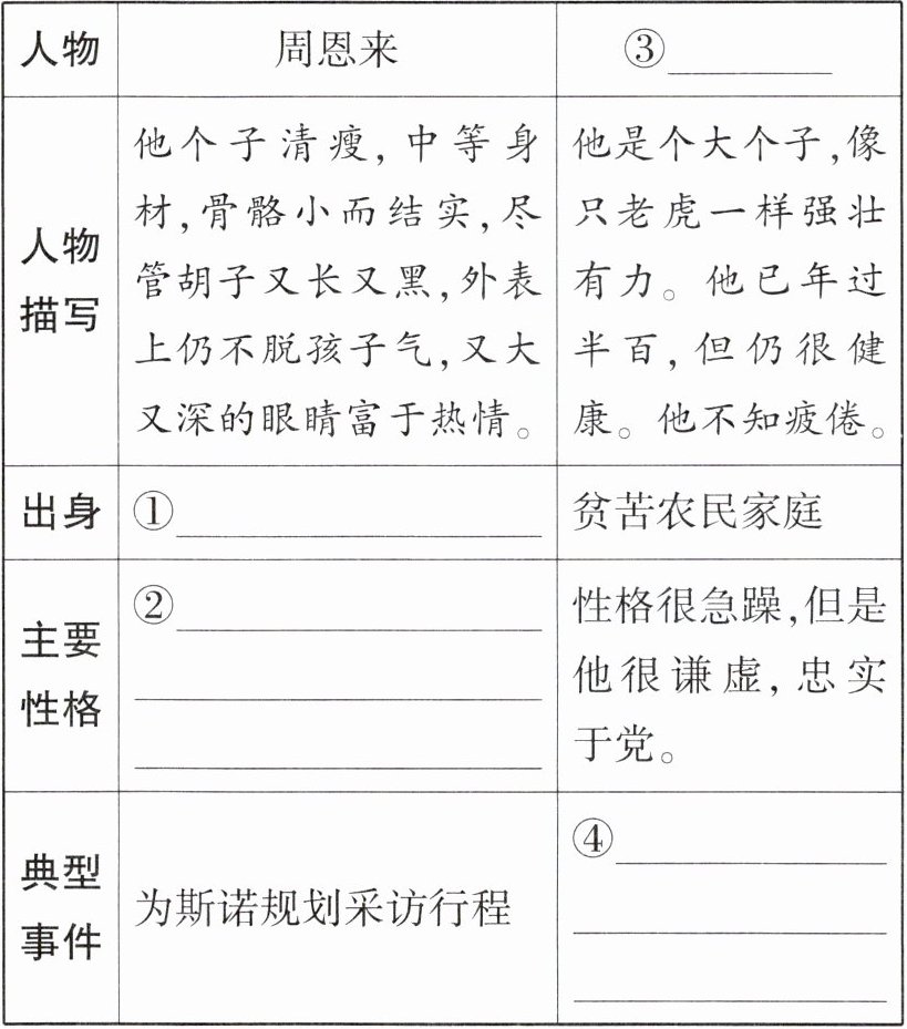 |主要性格|②______|性格很急躁,但是他很谦虚,忠实于党。|
