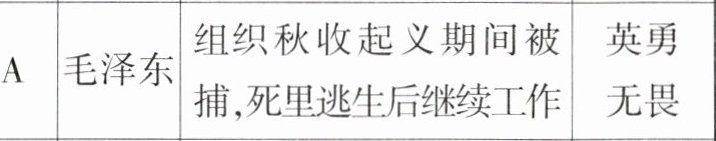 (2) 下列是同学们在阅读《红星照耀中国》的过程中,用表格整理的部分印象最深刻的人物卡片,