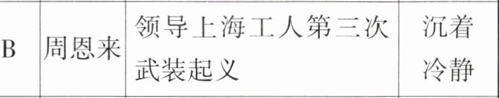 |B|周恩来|领导上海工人第三次武装起义|沉着冷静|