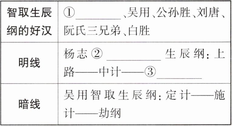 |明线|杨志②____生辰纲:上路——中计——③____|