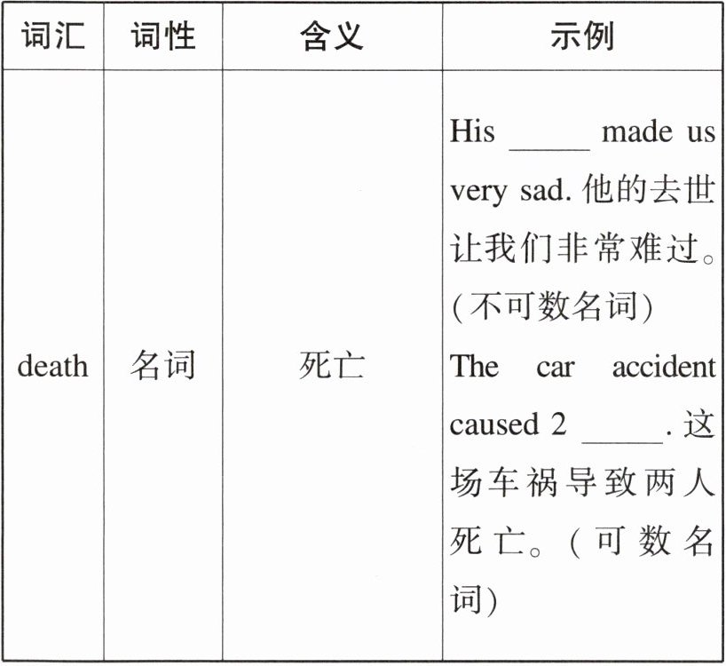 made us very sad. 他的去世让我们非常难过。(不可数名词)The car accident caused 2 deaths