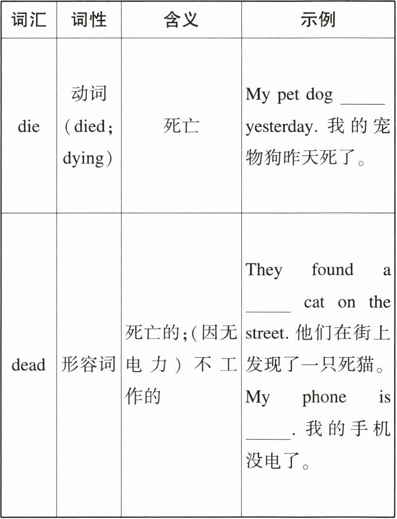 ❶①wait until ②until comes ❷died dead dead death deaths 活学巧辨:died death dead