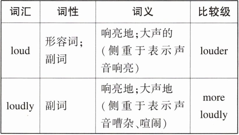 【注意】loud 还可以作形容词。aloud 也是副词,意为“出声地”。例如: