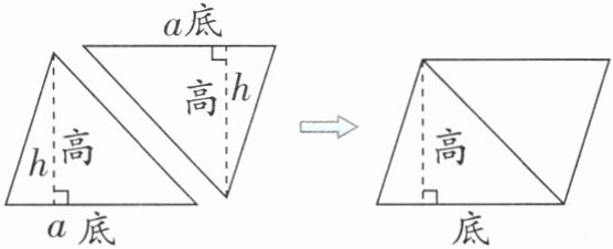 $ ah÷2 $【点拨】由图可知,平行四边形的面积是$ ah $,一个三角形的面积是平行四边形面积的一半。