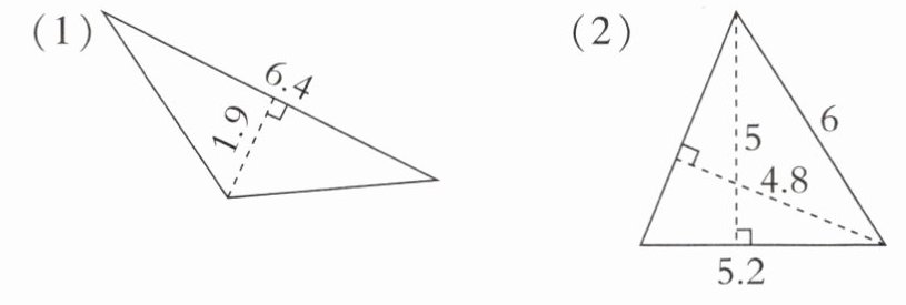 【点拨】三角形的面积=底×高÷2,注意底和高要对应,5.2 cm 的底对应的高是5 cm。