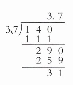 (1)蓝蓝在计算14÷3.7(保留一位小数)时,根据下面的竖式得出商约是3.8。你知道蓝蓝是怎样想的吗?