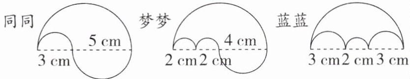 (1)同同、梦梦和蓝蓝分别用圆规画出了下面三个图形,这三个图形的周长相比,(