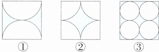 D 【点拨】①12×12 - 3.14×(12÷2)²=30.96(cm²),②12×12 - 3.14×(12÷2)²=30.96(cm²),③12×12 - 3.14×(12÷2÷2)²×4=30.96(cm²),三个图形中涂色部分的面积都是30.96cm²。