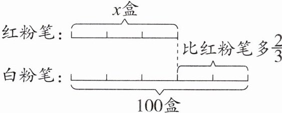 【点拨】根据题意得等量关系式为红粉笔的数量×$(1+\frac{2}{3})$=白粉笔的数量,进而列出方程求解。