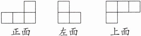 (2)(易错题)典典用同样的小正方体搭一个立体图形,搭成的立体图形从正面、左面和上面看到的形状如下,搭这个立体图形需要( )个小正方体。
