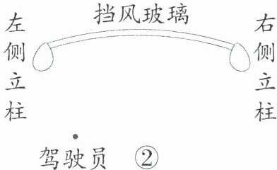 【点拨】挡风玻璃两侧的立柱会遮挡驾驶员的视线,有盲区。注意要把盲区画出来。