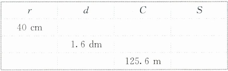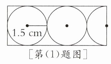 (1)9.42 21 [点拨]根据“C = 2πr”求出其中一个圆的周长为2×3.14×1.5 = 9.42(cm),观察图可知长方形的宽是1.5×2 = 3(cm),长方形的长是5×1.5 = 7.5(cm),所以长方形的周长是(7.5 + 3)×2 = 21(cm)。