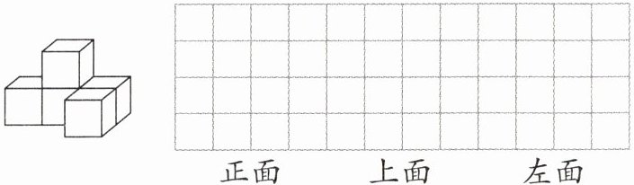 4. 用小正方体搭一个立体图形(如下左图),画出这个立体图形从正面、上面、左面看到的形状。