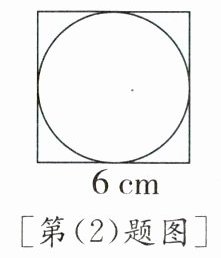 (2)3 7.74 78.5 [点拨]观察题图可知,圆的直径等于正方形的边长,圆的半径是6÷2 = 3(cm),面积是3.14×3² = 28.26(cm²),正方形的面积是6×6 = 36(cm²),阴影部分的面积 = 正方形的面积 - 圆的面积 = 36 - 28.26 = 7.74(cm²),圆的面积是正方形面积的28.26÷36 = 78.5%