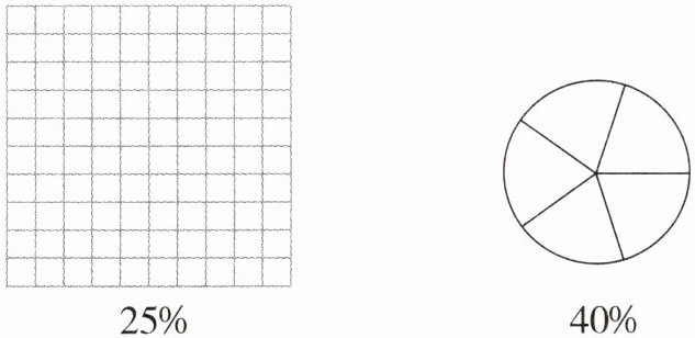 2. 在下图中分别涂上颜色表示下面对应的百分数。