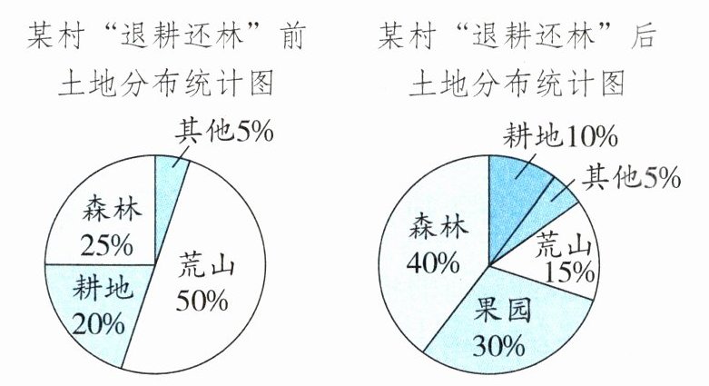 提示:要分别找出“退耕还林”前、后耕地面积各占的百分比。