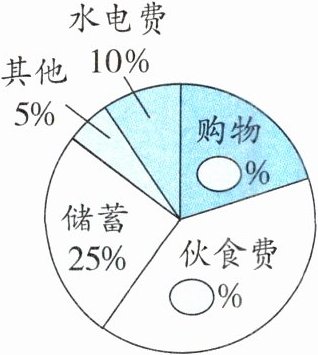 【点拨】先根据其他支出200元占总支出的5%,用除法求出总支出是多少元,再用伙食费支出除以总支出,得到伙食费支出占总支出的百分比。用整体“1”减去伙食费、水电费、储蓄、其他支出占总支出的百分比,得到购物支出占总支出的百分比。最后用求出的总支出分别乘购物、储蓄、水电费支出占总支出的百分比,求出这三项支出的金额。