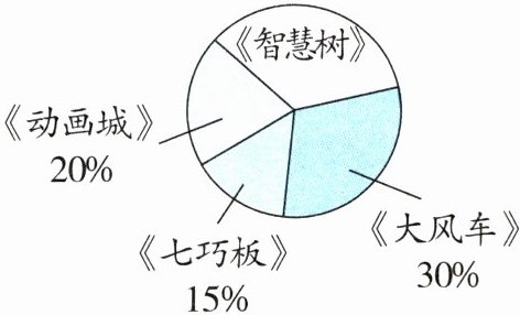 (3)《智慧树》 《七巧板》 【点拨】35%>30%>20%>15%,所以最喜欢《智慧树》栏目的人数最多,最喜欢《七巧板》栏目的人数最少。