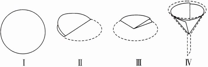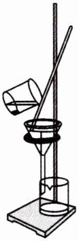 取一张圆形滤纸,如右图所示折好并放入漏斗内(一边一层,另一边三层),用少量水润湿使之
