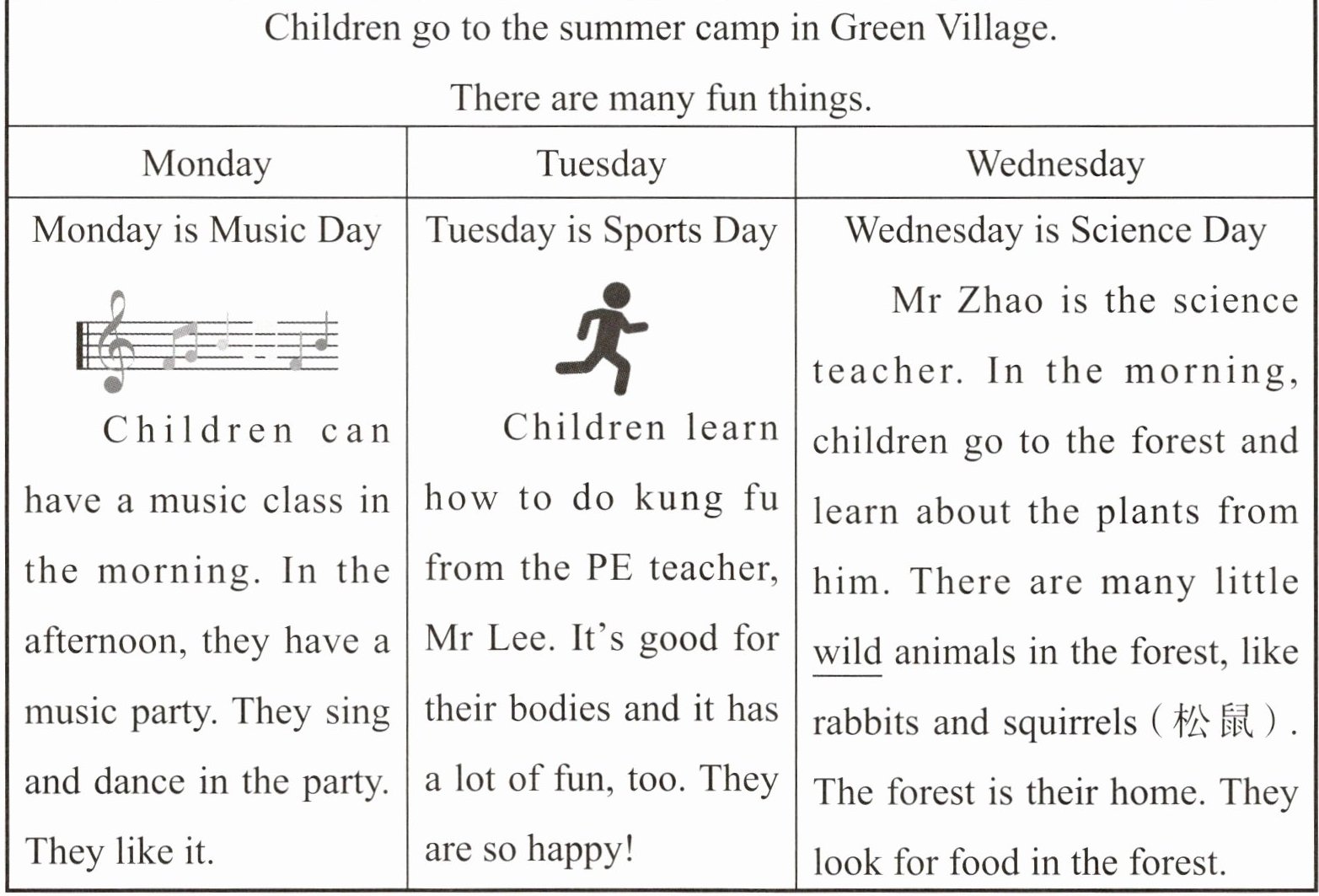 三、你参加过夏令营(summer camp)吗?阅读短文,选择正确选项。