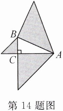 14. (教材P132习题T3变式)如图,$ \angle ACB = 90^{\circ} $,$ AB = 4\ cm $,以$ Rt\triangle ABC $的三边为直角边分别向外作等腰直角三角形,则图中阴影部分的面积为