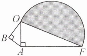 15. 如图所示,$ \angle B = \angle OAF = 90^{\circ} $,$ BO = 3\ cm $,$ AB = 4\ cm $,$ AF = 12\ cm $,求图中半圆(阴影部分)的面积.