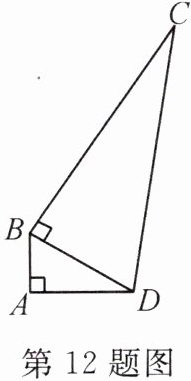 12. 如图,若$ \angle BAD = \angle DBC = 90^{\circ} $,$ AB = 3 $,$ AD = 4 $,$ BC = 12 $,则$ CD = $