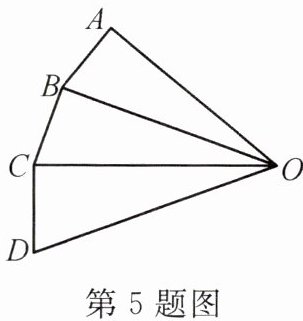 5. 如图,$\angle A = \angle OCD = 90^{\circ}$,$OA = 2$,$OD = \sqrt{7}$,$AB = BC = CD = 1$,则$\triangle OBC$的形状是