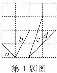 1. 如图,正方形网格中的每个小正方形边长都是 1,任意连结这些小正方形的顶点,可得到一些线段. 则图中表示长为$\sqrt{5}$的线段是