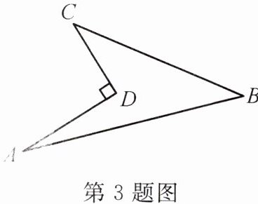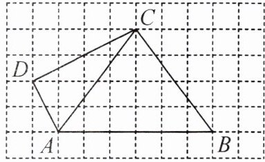 4. 解:△ADC是直角三角形,△ABC是等腰三角形.理由:由勾股定理,得$AC = \sqrt{3^{2} + 4^{2}} = 5,$$AD = \sqrt{1^{2} + 2^{2}} = \sqrt{5},$$CD = \sqrt{2^{2} + 4^{2}} = \sqrt{20}.\therefore AD^{2} + CD^{2} = AC^{2}.\therefore △ADC$是直角三角形,且$\angle ADC = 90^{\circ}.\because BC = \sqrt{3^{2} + 4^{2}} = 5,$AC = 5,$\therefore AC = BC.\therefore △ABC$是等腰三角形.