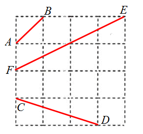 2. 如图,正方形网格中的每个小正方形边长都是 1. 请在图中画出线段 $AB$,$CD$,$EF$,使 $AB = \sqrt{2}$,$CD = \sqrt{10}$,$EF = \sqrt{20}$.