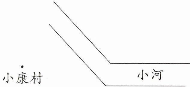 6. 小康村想要修一条引水渠到小河,怎样修才能使引水渠最短?请在下图中画出来。