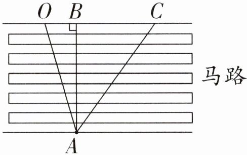 [提示]直线外一点到直线的所有线段中,垂线最短。观察题图可知,线段AB是垂直于马路的,而线段AO和AC都不是垂直于马路的。因此从点A 过马路最短的路线就是线段AB。