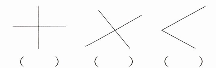 1. 下面各组中的两条直线,相交不垂直的画“○”,相交且垂直的画“△”。