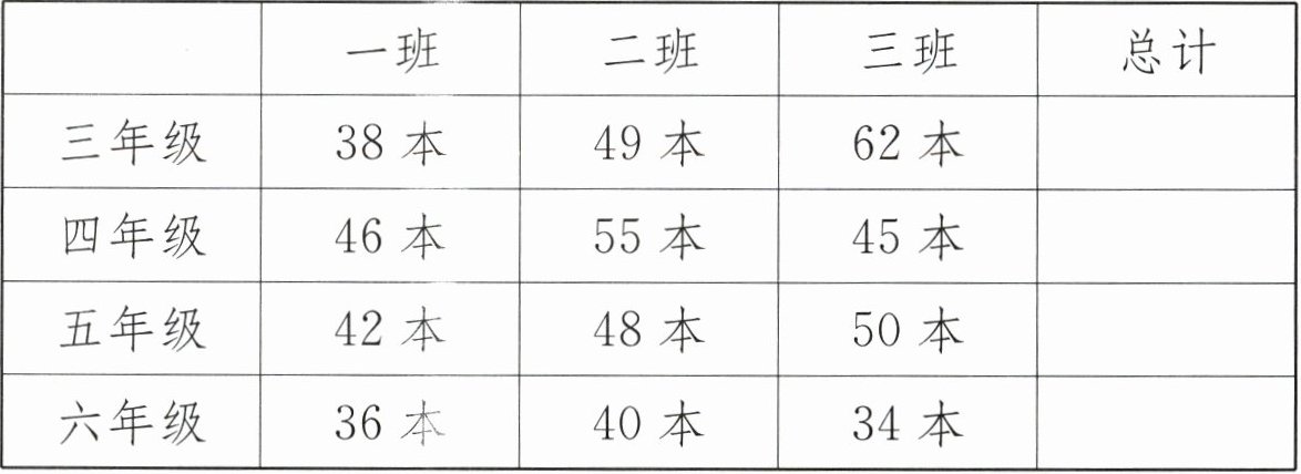1. 下面是实验小学三到六年级各班图书数量的情况,将下表补充完整。