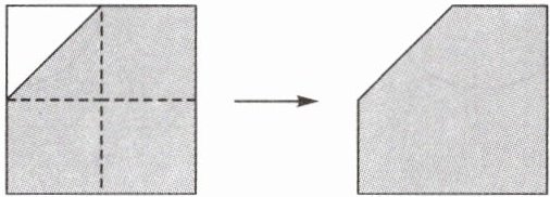 1. 如下图,把一张正方形纸对折,再对折,打开后剪成一个五边形,五边形中有(