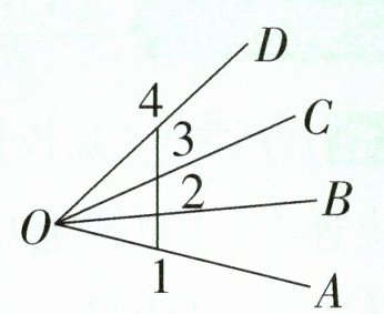 数角的方法和数线段的方法类似。图中的4条射线相当于线段上的4个点,即画一条线段,标上数字1,2,3,4,根据一条线段对应一个角,这样就可以用数线段的方法数出一共有6个角。