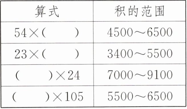 【提示】先把已知乘数看作一个整十或整百数,并结合积的范围进行估算,再用计算器检验。