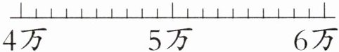 5. 一个数省略“万”后面的尾数约是 5 万,这个数最大是多少? 最小是多少? 在下图画出数的范围。