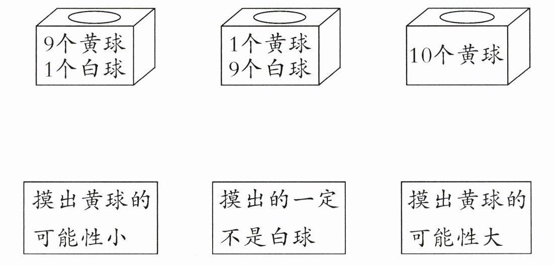 五、从下面三个箱子里分别摸出一个球,结果是什么?连一连。(共6分)