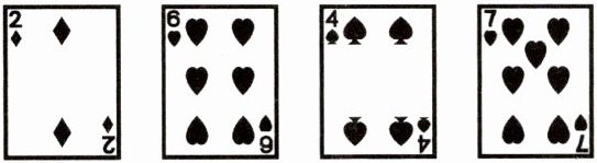 3. 下面4张扑克牌上的点数,怎样算才能得到24呢?至少写出两种方法。