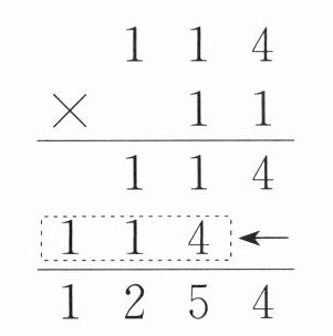 4. 我国发射的第一颗人造地球卫星绕地球1圈需要114分,绕地球11圈需要多少分?乐乐用右边的竖式进行了计算,竖式中“←”所指部分表示(