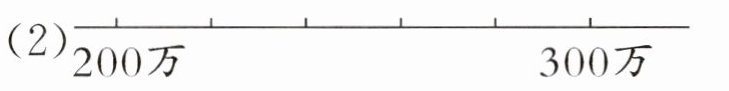 【提示】200万到300万之间被平均分成了5段,因此每小段表示二十万,通过数格子可以找到上面数的位置。四舍五入到哪一位,就把那一位后面一位上的数进行"四舍"或"五入"。