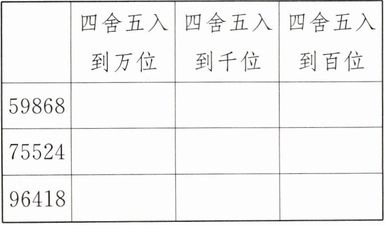 | | 四舍五入到万位 | 四舍五入到千位 | 四舍五入到百位 |
